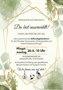 Gemeinsamer Aufbruchgottesdienst an Pfingstmontag der Gemeinden Stockstadt, Kleinostheim und Mainaschaff