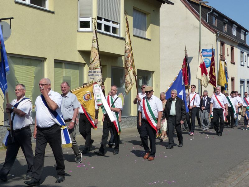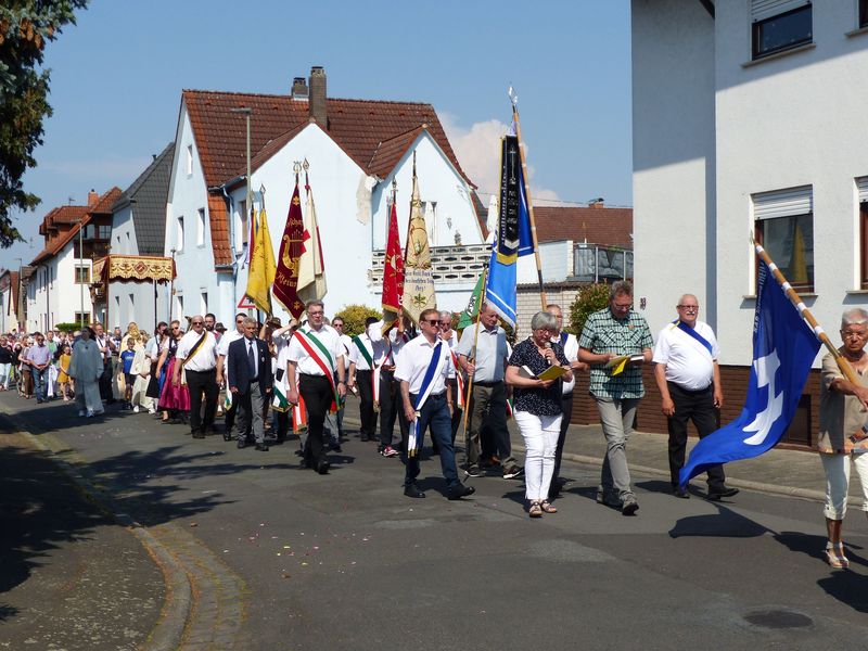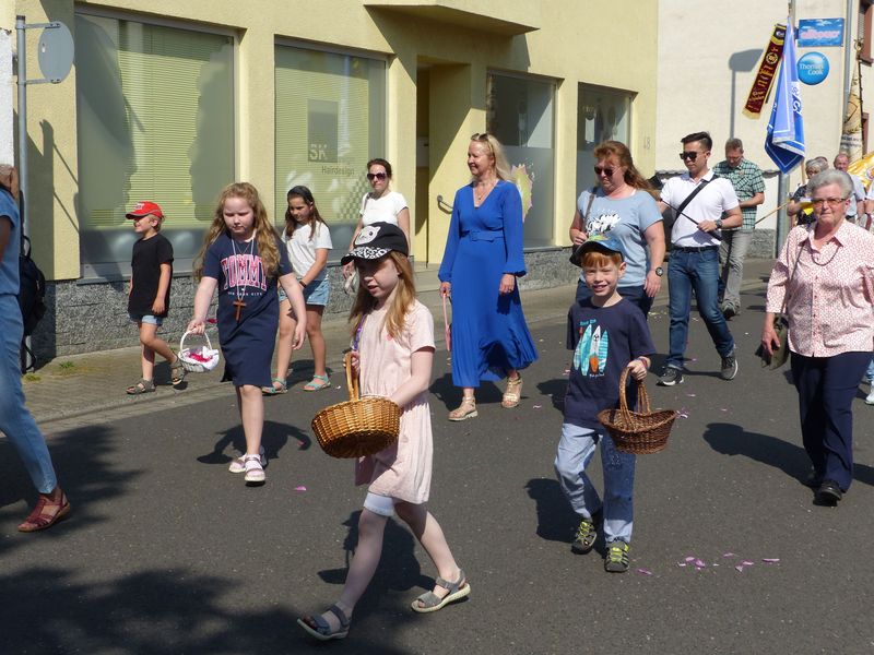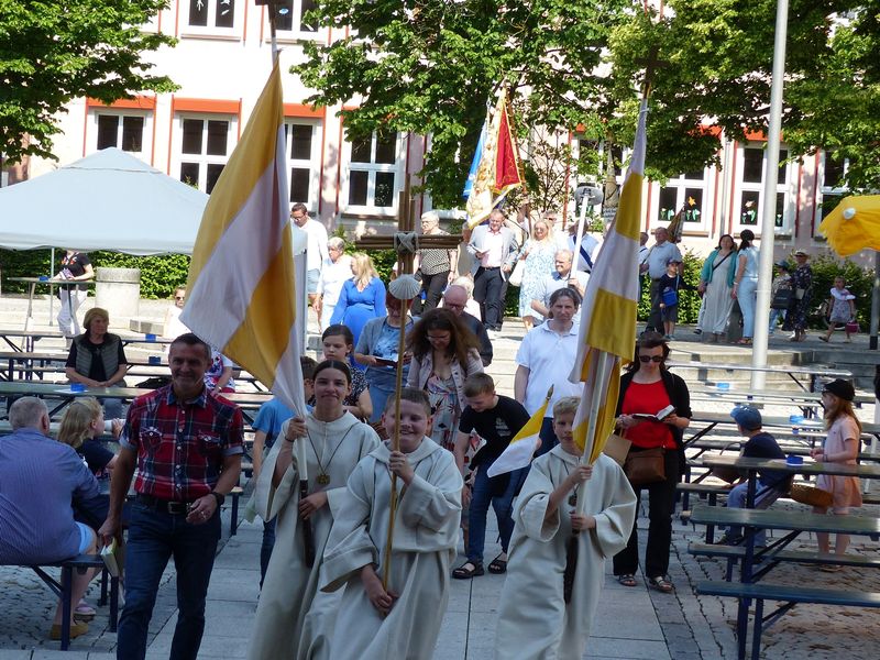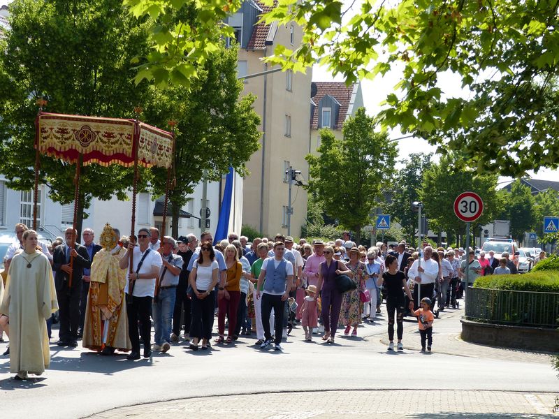 Über die Goethestraße führte die Prozession zurück zum Kirchplatz. Dort zogen alle Beteiligte in die Kirche ein, um zum Abschluss noch einmal den sakramentalen Segen zu empfangen.