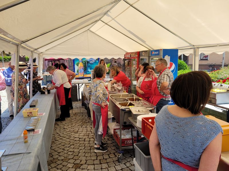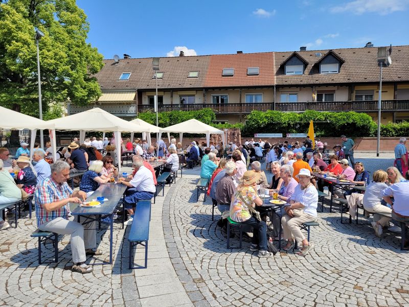 Beim anschließenden Kirchplatzfest, das die KAB organisierte, setzte sich die Gemeinschaft fort. Für das leibliche Wohl war ausreichend gesorgt, ob herzhaft bei Kammbraten und Bratwurst oder für Schleckermäulchen bei einer Tasse Kaffee und einer Auswahl aus dem Kuchenangebot.
