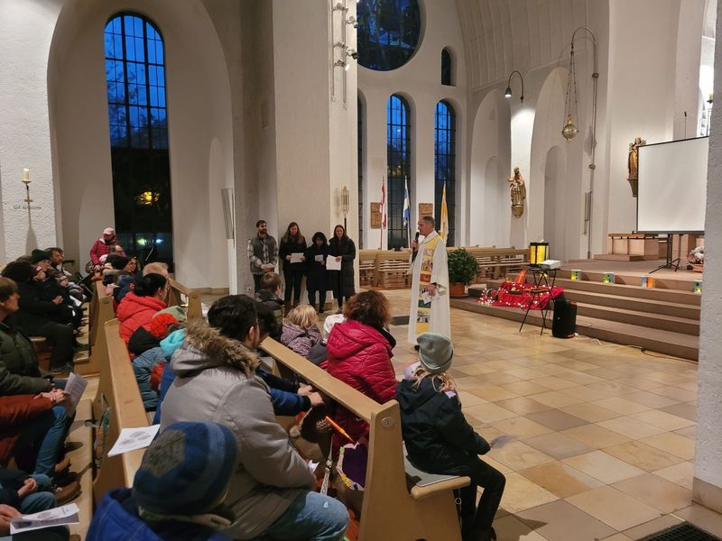Sehr viele Familien mit Kindern und ihren bunten Laternen waren zur Martinsfeier in unsere Kirche gekommen, um in einem kleinen Gottesdienst mit Pfarrer Kaufmann im Gebet und mit den bekannten Liedern den heiligen Martin zu feiern. Kinder und Erziehende aus dem Kindergarten St. Markus zeigten eindrucksvoll in ihrem Spiel das Teilen des bekannten Heiligen.