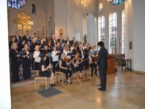 Am vergangenen Sonntag, 24. September sang der Kirchenchor St. Laurentius, unterstützt vom Kirchenchor Goldbach sowie Solisten und kleinem Orchester, anlässlich seiner “Stunde der Kirchenmusik” die kleine Orgelsolomesse von Joseph Haydn. Die Leitung hatte Karsten Schwind.