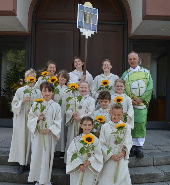Am Sonntag, 24. Juli war es endlich soweit. 8 Mädchen und Jungen, die sich entschlossen hatten, den Ministrantendienst in Kleinostheim zu übernehmen, wurden in die Schar der Ministrantinnen und Ministranten