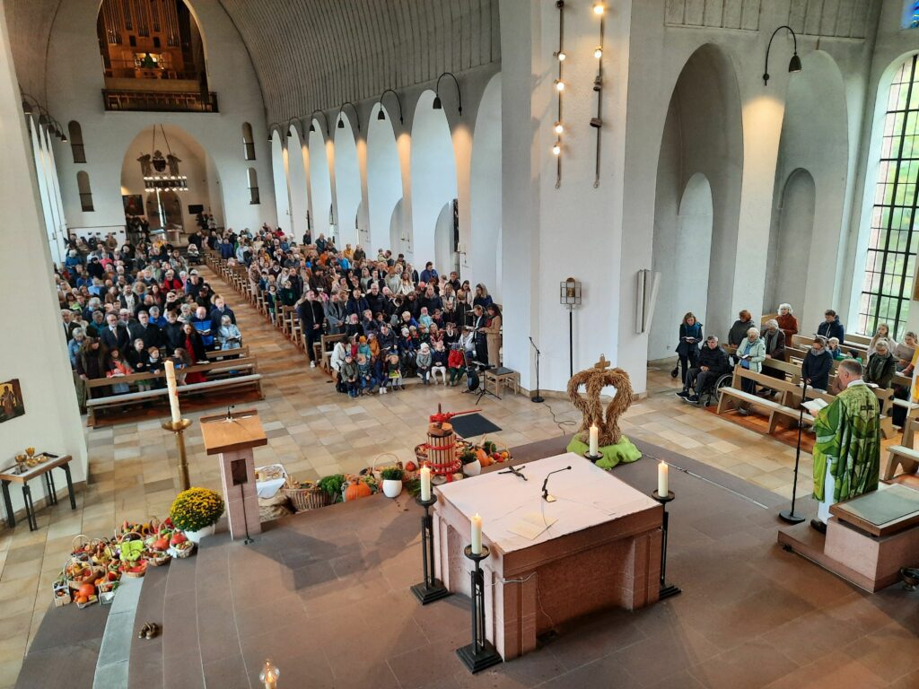 Familiengottesdienst mit Thema “Heute schon gestaunt”. Am Sonntag, 6. Oktober feierte die Gemeinde einen Familiengottesdienst. Viele Familien waren zu diesem Gottesdienst gekommen, um gemeinsam das Erntedankfest zu feiern. Stauen konnten