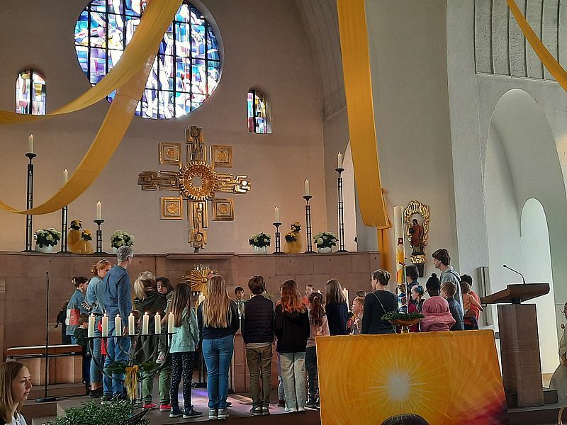 Unter diesem Motto stand der österliche Familiengottesdienst am vergangenen Sonntag 14. April. Gespannt schauten und lauschten zahlreiche Kinder der Geschichte von Katharina und Kaiser Maxentius in Wort und Bild, die