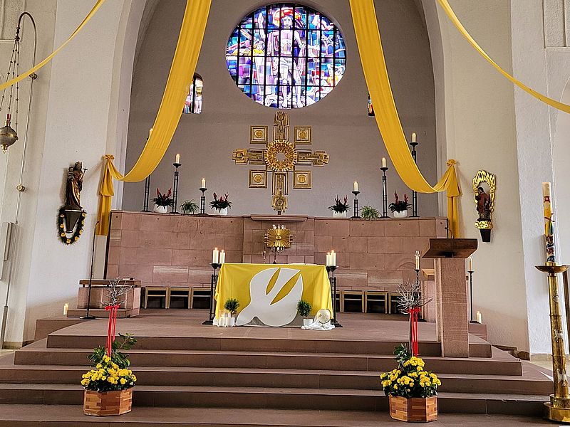 Pfingstmontag 20. Mai in Stockstadt Beseelt, ergriffen und erfreut zeigten sich die Gläubigen, die zum gemeinsamen pfingstlichen Aufbruch im Gottesdienst zusammengekommen waren, am sogenannten Gründungsdatum der Kirche, das wir an