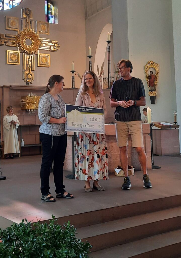 Am Sonntag wurde im Gottesdienst die Spende aus dem Benefizkonzert zum Laurentiusfest am 11. August an die Verwaltungsleitung des Instituts St. Bonifatius übergeben. Die Rhein Main Acoustic Band hatte auf