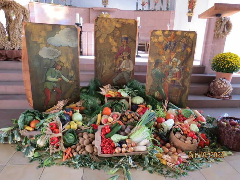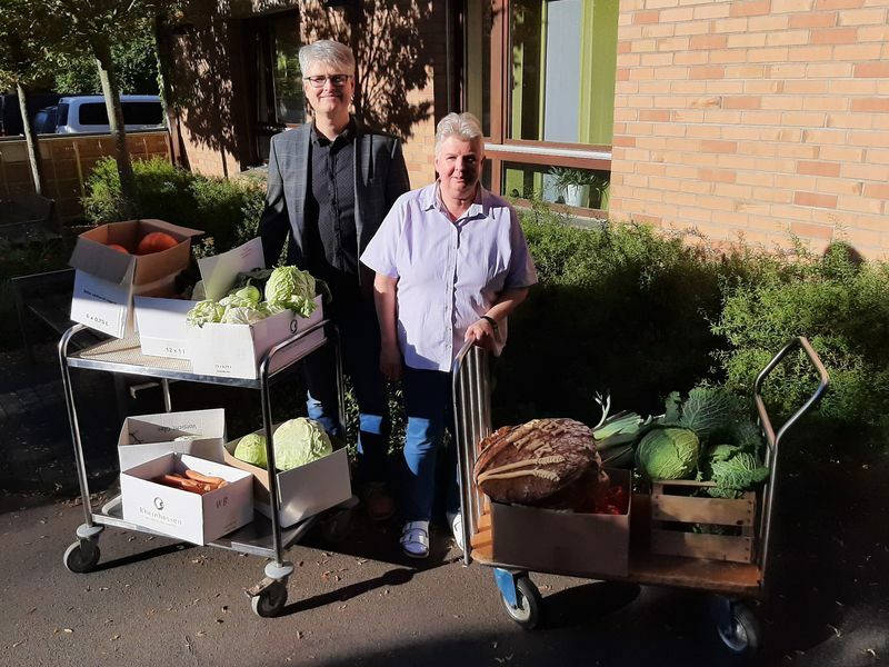Übergabe an das Kinderheim Aschaffenburg Nach dem Abschmücken des Erntedankaltars in der Kirche würde das Obst und Gemüse wieder an das Kinderheim Aschaffenburg übergeben. Die Verantwortlichen sprachen, auch im Namen