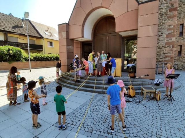 Bei herrlichem Sommerwetter versammelten sich am Sonntag zahlreiche Kinder und Familien und viele Gottesdienstbesucherinnen und – besucher zum Familiengottesdienst zur Sommersonnenwendeund zum Geburtsfest Johannes´ des Täufers zum Familiengottesdienst auf dem Kirchplatz.
